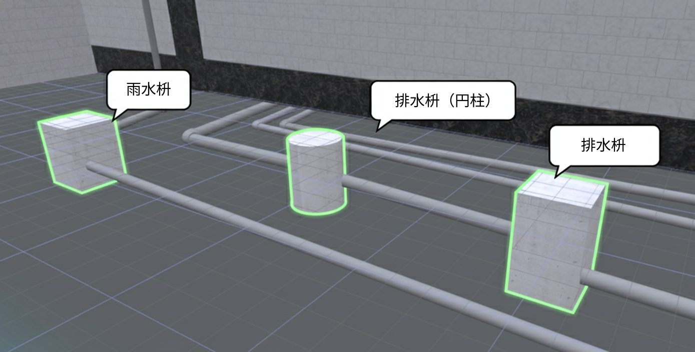 配管や継手だけでなく、枡(ます)の設置にも対応しました。枡には「排水枡」「雨水枡」などの種類を設定が可能です。
