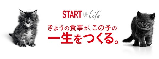 「Start of Life キャンペーン」は、ロイヤルカナンが世界中で実施しているキャンペーンです。品種やサイズによって異なる育て方や成長期の栄養管理について、子猫・子犬オーナーに知識を深めていただくことで、「猫と犬の真の健康」をその生涯のスタート(Start of Life)から実現することを目的としています。
