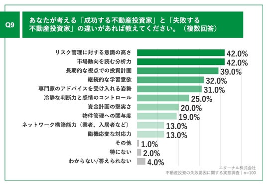 ■成功する不動産投資家と失敗する不動産投資家の違い、「リスク管理に対する意識の高さ」「市場動向を読む分析力」が同率1位