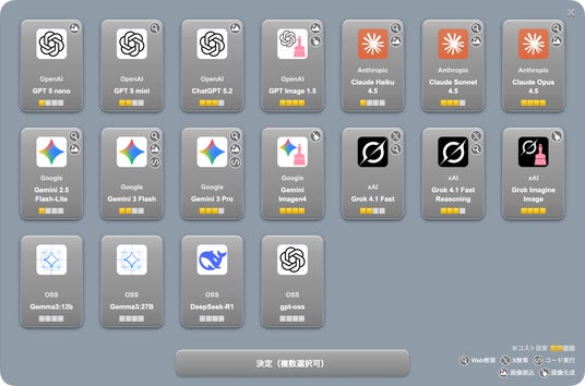 3. 各種AIモデルを選択可能。複数モデルの比較もできる