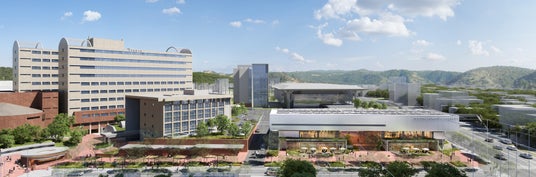 また、同施設裏手から大楠アリーナ2020前エリアには地域交流ゾーンとして「くすの葉広場」を新設。文学・アートの屋外展示、治水機能を有した雨庭、四季折々でさまざまな表情を見せてくれる木々や草花を施し、日常的な健康維持や学びの場を提供します。休日にはマルシェや映画祭などのイベントの企画・開催を通じ、多世代が交流する開かれたキャンパスを目指してまいります。