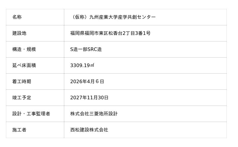 九州産業大学(以下、本学)は、2026年4月6日(月)より、産業界や地域社会と共に建学の理想「産学一如」を体現する架け橋となる新施設「(仮称)九州産業大学産学共創センター」の建設工事に着手いたしました。