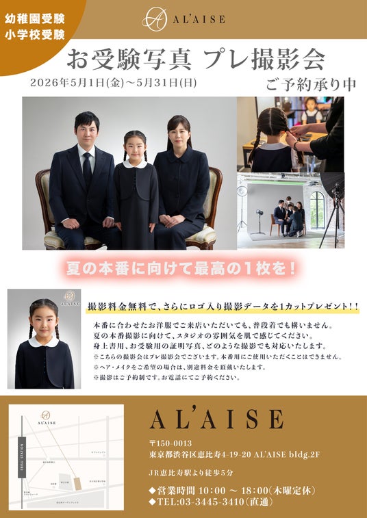 株式会社 光潮社(本社:東京都渋谷区、代表:堀 恵介)が運営するフォトスタジオ、「AL’AISE」は、