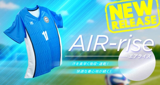 スポーツブランドの運営を中心に多彩な事業を展開している株式会社フラスコ100cc(本社:東京都台東区、代表取締役:矢口 貴士)が運営するサッカーユニフォームブランド「PixoAleiro(ピクサレイロ)」は、2025年4月より、吸水・速乾に優れた新生地「AIR-rise(エアライズ)」を採用したユニフォームをリリースしました。