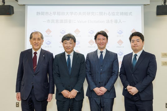 VETA(ヴィータ)株式会社(本社:東京都新宿区、代表取締役CEO 原 健人、以下「 VETA社」)は、学校法人早稲田大学(所在地:東京都新宿区 理事長 田中 愛治、以下「早稲田大学」)と連携し、静岡市が実施する市民意識調査をより精度の高いものへと進化させる共同研究に参画します。本取り組みは、VETA社が提供する「Value Elicitation法」(以下、VE法)の“自治体への初の本格導入”となる実証的な共同研究です。2026年3月26日に静岡市と早稲田大学が本共同研究の協定を締結し、記者会見にて発表されました。