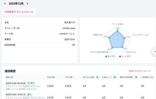 長年の研究に裏打ちされた高精度な解析により、現場での納得感が高いフィードバックや、育成に直結する具体的な改善示唆を提供できる点が特長です。本提携により、パーソルビジネスプロセスデザインのHDI国際標準ノウハウを融合したオプションモデルも提供を開始。評価の自動化に留まらず、コンタクトセンターのCX向上に向けた確実なアクションを支援します。