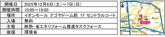 このイベントが、12月6日(土)~12月7日(日)に、愛知県名古屋市のイオンモール ナゴヤドーム前 1F セントラルコートに登場します。リフォームや断熱関連のニーズが顕在化していない層、特に戸建て所有者およびファミリー層に向けて、断熱リフォームへの気づきと必要性の理解を促進してもらうための、コンテンツを出展します。
