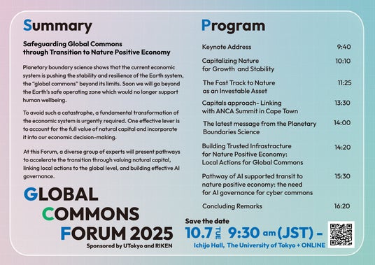 東京大学グローバル・コモンズ・センター(CGC)は、「Global Commons Forum 2025」を2025年10月7日(火)に開催します。