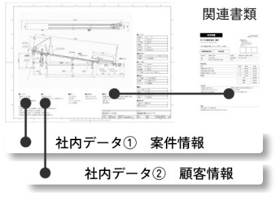 見積書・仕様書・検査成績書などの関連書類、さらに基幹システムのデータを自動で紐付け