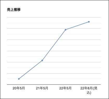 ▼コロナ前~現在までの当社の売上推移(22年5月現在)