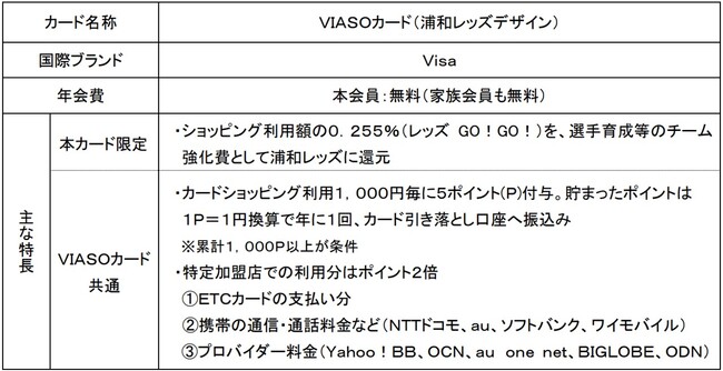 ・「VIASOカード(浦和レッズデザイン)」は、浦和レッドダイヤモンズ株式会社との提携により2014年1月から発行。ショッピング利用額の一部を浦和レッズのチーム強化費に充当する、浦和レッズファンのためのカード。