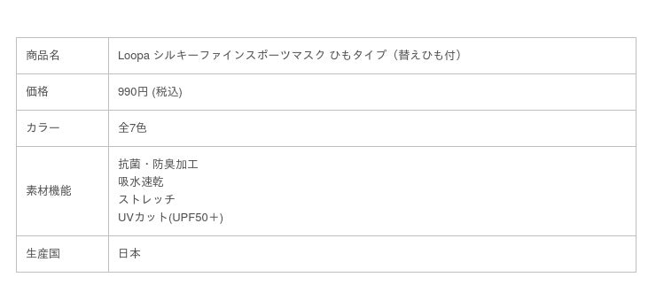 【息がしやすい Loopa スポーツマスクシリーズ】