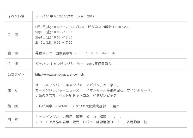 ■「ジャパン キャンピングカーショー2017」開催概要