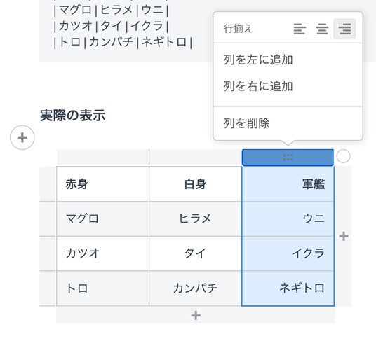 Markdownでは面倒だったテーブルの行・列の増減を簡単に行えます。セル内コンテンツも見やすく、編集も簡単です。