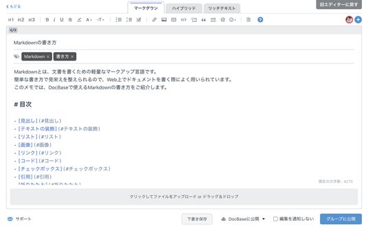 株式会社クレイが運営する情報共有サービスDocBaseは、MarkdownとWYSIWYGを同時に使える業界初の「ハイブリッドエディター」を2024年4月16日にリリースしました。