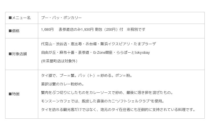 この冬はスパイスであたたまる タイ発祥の名物“プー・パッ・ポンカリー”販売スタート!!