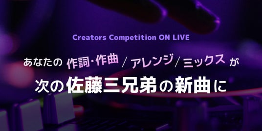 この度、私たちは「Creators Competition ON LIVE」を開催することを決定いたしました。これは、登録している多くの才能あふれるクリエイターが一堂に会し、競い合い、高め合う場です。今回のコンテストでは、次世代のパフォーマーである佐藤三兄弟への楽曲提供をテーマにしています。彼らの初のオリジナル楽曲を制作するという貴重な機会をもって、クリエイターの皆様に新たな挑戦と活躍の場を提供します。