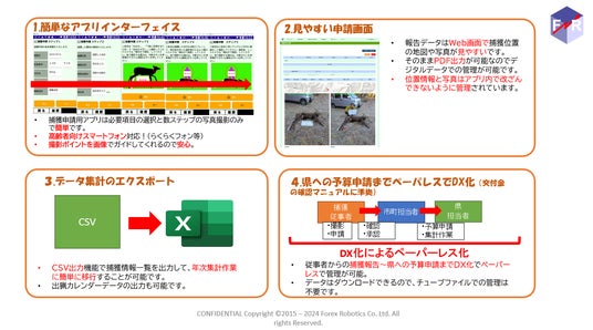 Forex Robotics株式会社は、市町などの地方自治体向けに農作物に被害を出すシカ、イノシシなどの有害鳥獣の捕獲確認事務のデジタル化サービスである「有害獣捕獲情報システム いのしかレコード」の全国での受付を開始しました。