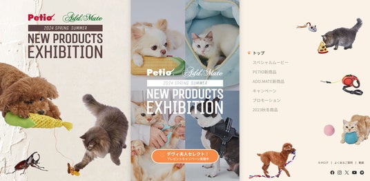 株式会社ペティオ2024年春新商品を紹介するWeb展示会がオープン!展示会ではゲストにデヴィ夫人を迎え、当社代表 山田武史との対談を実施!デヴィ夫人が選ぶペティオ新商品プレゼントキャンペーンも開催。