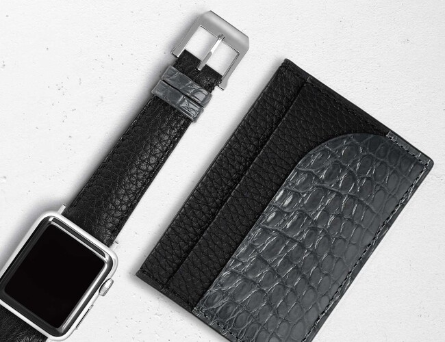 柔らかくなじみの良いトリヨンレザー(牛革)に、定遊革(ループ)をアリゲーター(ワニ革)の丸斑 / アビエ仕様