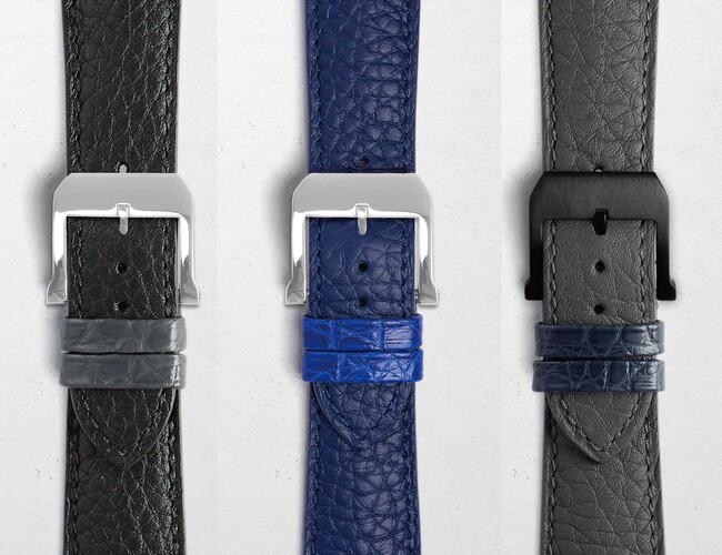 カーフ(牛革)を型押したヴォーグレネに、定遊革(ループ)をアリゲーター(ワニ革)の丸斑 / アビエ仕様