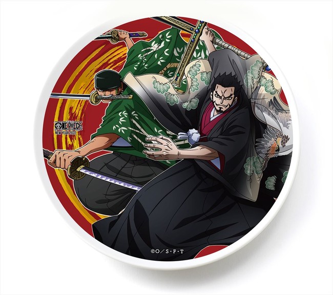 鷹・虎をイメージした着物に身を包み、刀を構えるミホーク&ゾロの陶器皿です。(素材:陶器 直径16.2cm 日本製)