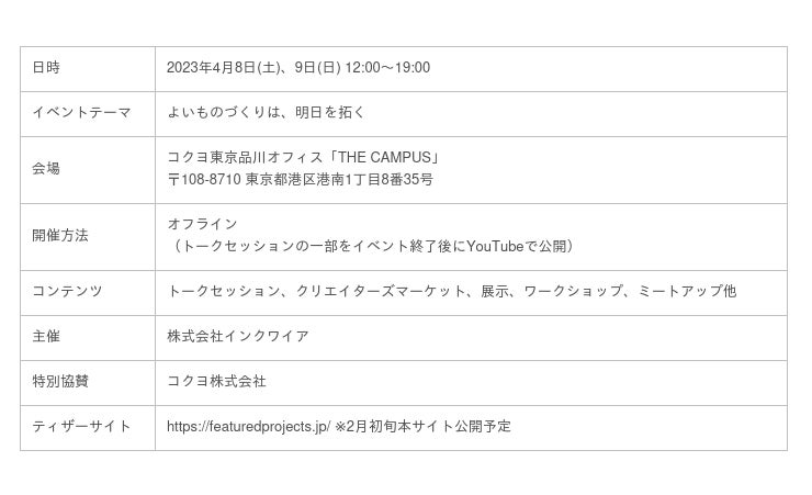 株式会社インクワイア(代表取締役:モリジュンヤ、以下インクワイア)は、デザイン産業振興・デザインによる社会変容に取り組むdesigning事業部(事業責任者:小山和之)において、デザインプロジェクト「Featured Projects(フィーチャード・プロジェクツ)」を立ち上げました。