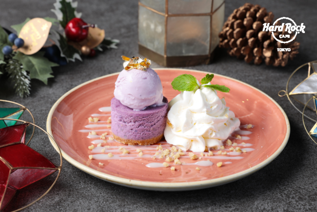 紫芋(ウベ)を使用したフィリピンで大人気のケーキに、ウベアイスと金箔をトッピング。ホリデーシーズンらしい豪華なビジュアルと共に、ココナッツソースとの相性もお楽しみください。