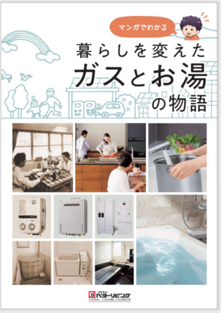 この小冊子は、『ガスとお湯の50年~時代とともに、 暮らしを豊かに~』をもとに、ガスがまだ使われていなかった江戸時代から、ガスの普及によりお湯が便利に使えるようになった現在までの暮らしの変化や、ガス機器の進化、さらにはカーボンニュートラルに向けたこれからの取組み等について、広く一般の方々に知っていただくために、マンガやイラストを用いてわかりやすく紹介しています。