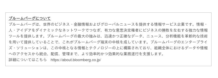 前ニューヨーク市長で国連の気候変動特使であるマイケル・ブルームバーグが1981年に創業したブルームバーグ L.P.は世界の金融・ビジネスデータ、ニュース、分析ツールを革新的なテクノロジーを通じて提供するグローバル企業です。