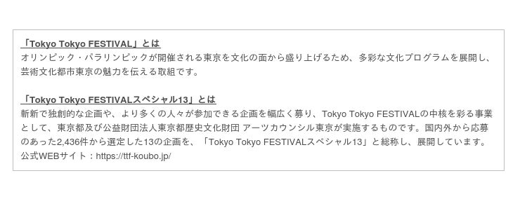 主催:東京都、公益財団法人東京都歴史文化財団 アーツカウンシル東京