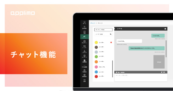 管理者とアプリのユーザーの間でチャットを行うことができる機能を実装します。顧客からの質問や問い合わせに対して迅速に対応を行えるため、コンサル業やプランナー、カスタマー対応などのBtoB全般でご活用いただけます。