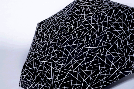 通常ではブラック1色に見える傘は、光が当たると再帰反射デザインが浮き上がってみえます。