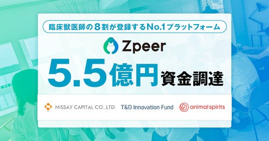 株式会社Zpeer(ズピア)(設立:2013年、本社:東京都渋谷区、代表取締役:森野 俊哉、以下ズピア)は、ニッセイ・キャピタル株式会社(東京都千代田区、代表取締役:上田 宏介)、Spiral Innovation Partnersが運営するT&Dイノベーション投資事業有限責任組合(東京都港区、代表組合員:鎌田 和博)、ならびにアニマルスピリッツ合同会社(東京都港区、代表パートナー:朝倉祐介)を引受先とする第三者割当増資の実施により、2024年5月に5.5億円の資金調達を実施しました。今回の資金調達により、借入を含む累計調達額は約10億円となりました。