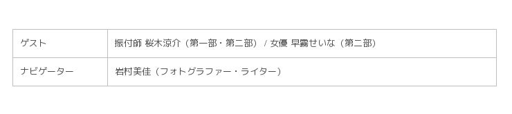 フォトグラファー・ライターの岩村美佳が、取材をする中で出会ってきた演劇・ミュージカル界の「クリエイター」や「アクター」。彼らはみな、何百何千というオーディエンスに極上のエンターテインメントを日々届ける仕事人であり、それぞれにユニークな人間的魅力を持つスゴイ人たちでした。Bumpy Lensはそんなインタビュアーの「レンズ(Lens)」を通し、舞台づくりで活躍するプロフェッショナルの「でこぼこ(Bumpy)」な個性と頭の中をのぞき見するトークショーです。今回はHibiya Festivalバージョンで2つのイベントをご用意。まずは振付師 桜木涼介さん・女優 早霧せいなさんをゲストにお招きします! 早霧さんが雪組トップスターとして活躍した宝塚時代から卒業後のコンサート、ミュージカルなどで現場を共にしてきた桜木さん。「振付師の仕事」にフォーカスをあてながら、そのコラボレーションについて伺います。