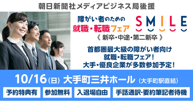 首都圏最大級の障がい者向け就職・転職フェア「SMILE」が10/16(日)東京・大手町にて開催!