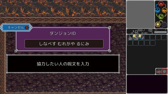 メインプレイヤーのダンジョンID(文字列)をチャットなどで共有すると、誰でもそのダンジョンをプレイでき、メインプレイヤーをサポートすることができます。