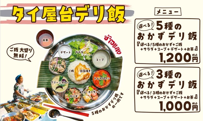 下北沢店では、タイ屋台を再現した料理と空間で昼はランチ、夜は食事や友人・知人との賑やかな飲み会など様々なシーンでご利用いただけます。ランチタイムには数量限定でタイ屋台の定番ランチスタイル「カオケン屋台」が楽しめます。「カオケン屋台」とは、ご飯と数種類の好きなおかずが選べるシステムでタイのファストフードとも呼ばれています。