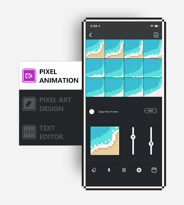 ・専用のスマートフォンアプリケーション『Divoom pixelart community』を使って256灯(16×16)のRGB LEDでオリジナルのピクセルアートのデザイン・アニメーションを作成ができます。(アプリはiOSとAndroidに対応)