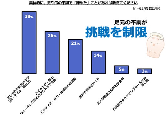 3. しかし65%が「足や爪の不調」を理由に挑戦を諦めたと回答!