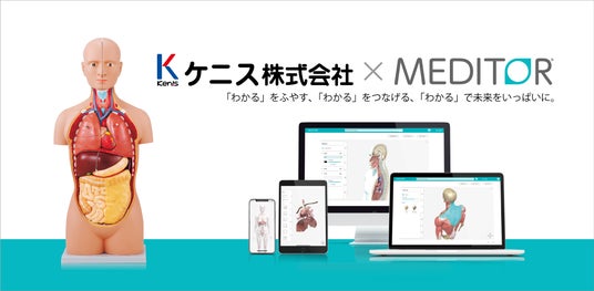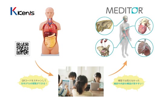 皆さまお馴染み「理科室の人体模型」と、最先端デジタル医学教材「MEDITOR(R)︎」のコラボレーションがついに実現! 2025年4月1日から全国の小中高校の理科教材として子供たちの教育現場に展開。