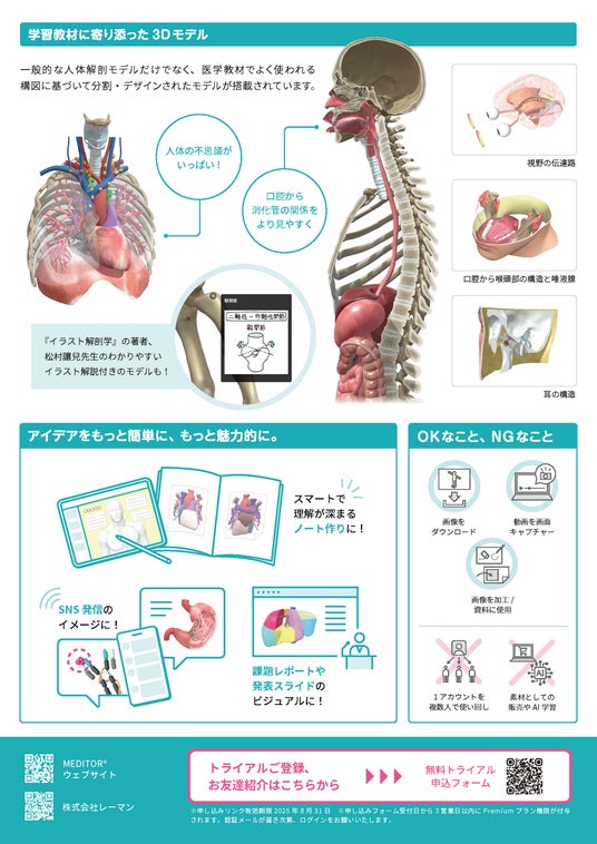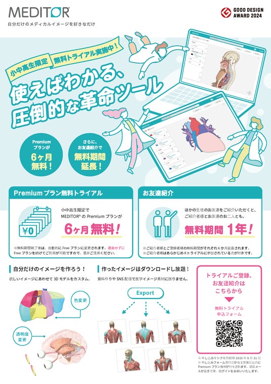 ★️今回の人体模型コラボレーションを記念し、公式MEDITOR(R)︎では「小中高校生限定Premiumプラン無料キャンペーン」を開催しております!★️