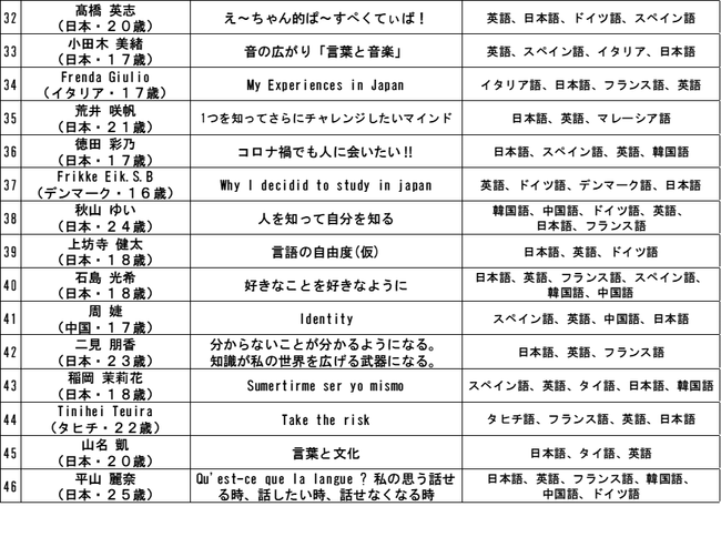 自分自身の多言語体験に基づいた世界や社会に発信するメッセージであること