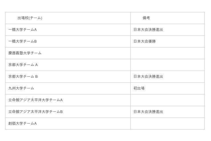 *初出場は大学単位で記載(個人としてはリサーチ・チャレンジには1回のみ出場可能)。