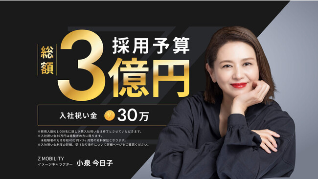 ついては、その採用にブーストをかけるべく、小泉今日子さんにZ-Mobilityイメージキャラクターに起用させていただき、またそれを記念して総額3億円を投じた採用強化を実施致します。