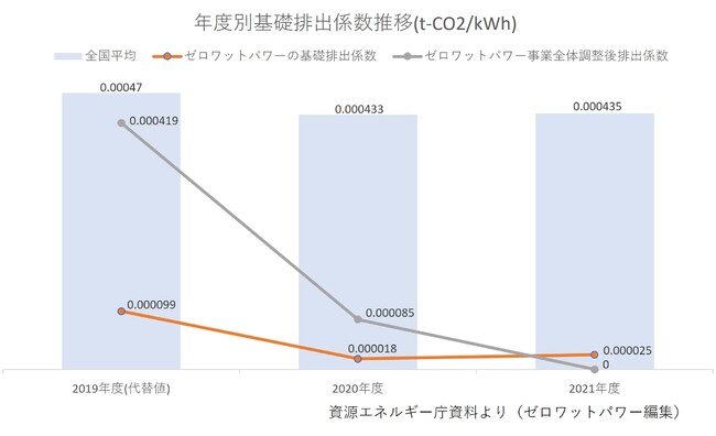 ゼロワットパワー株式会社(所在地:千葉県柏市、代表:佐藤和彦、以下「ゼロワットパワー」)は、2023年1月24日に環境省が公表した地球温暖化対策推進法に基づく温室効果ガス排出量算定・報告・公表制度における温室効果ガス排出量算定に用いる2021年度の電気事業者ごとの二酸化炭素基礎排出係数において、新電力744社における2021年度平均供給量241,378千kWh以上の会社中、係数が最も小さくトップの0.000025(t-CO2/kWh)であることが明らかになりました。また同時に公表となった事業全体調整後排出係数の数字は0.000000(ゼロ)となります。