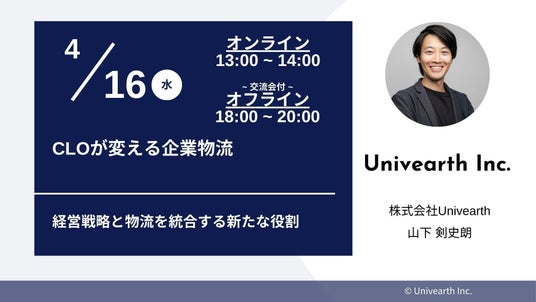 企業の物流戦略支援を行う株式会社Univearth(本社:大阪府大阪市北区、代表取締役:谷口 臨太朗)は、2026年4月からのCLO(Chief Logistics Officer)選任義務化に向けて、物流を経営戦略レベルで捉え直すためのオンラインセミナー「CLOが変える企業物流 ~経営戦略と物流を統合する新たな役割~」を開催いたします。