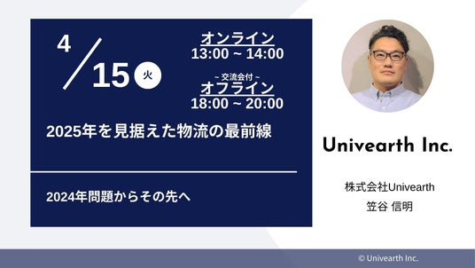 物流DXプラットフォーム『LIFTI』を運営する株式会社Univearth(本社:大阪府大阪市北区、代表取締役:谷口 臨太朗)は、物流業界を取り巻く時間外労働上限規制や改善基準告示の改正、さらには改正物流効率化法の施行など、2024年以降に大きく変化する環境に対応するための物流のあり方と、サプライチェーン全体の最適化をテーマにした無料オンラインセミナーを3月4日(火)開催いたします。本セミナーでは、各法改正への具体的対応策や、DXを活用した物流業界の課題解決、将来的な輸送能力不足への備えを解説し、物流の未来を見据えた総合的な視点を提供いたします。