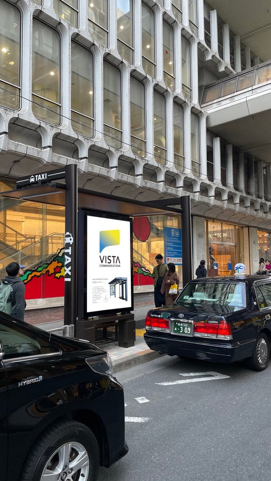 ヴィスタコミュニケーションズ株式会社(VISTA Communications)は同社が広告事業で運営している都内の広告付タクシーシェルターにDynascan(ダイナスキャン・テクノロジー・ジャパン株式会社)の自立型屋外キオスクを導入しました。既に欧米豪の主要都市で大量展開されている屋外広告メディアであるDynascan屋外キオスクの導入で同社は、広告事業をさらに拡大・強化していきます。