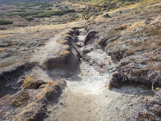 写真:木道や登山道の荒廃が進む様子。生物多様性の損失や景観の損傷にもつながっている。(一般社団法人大雪山・山守隊提供)